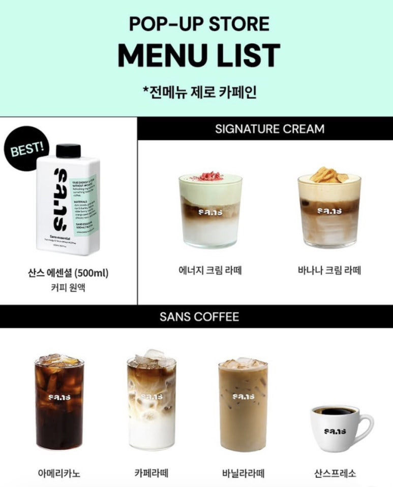 제로 카페인의 혁신, 산스(SANS) 팝업스토어 더현대 서울 & 현대 판교점 순차 진행!