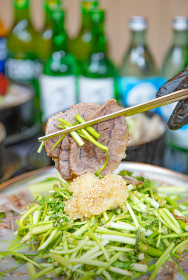 남대갈뚝배기의 핵심은 ‘육수’입니다. 일반적인 사골 육수와는 차원이 다른, 여수 금오도에서 자생하는 ‘방풍’을 사용해 끓여낸 육수는 그 깊이와 향에서부터 남다릅니다. 방풍은 특유의 향긋함과 건강함을 더해주는 재료로, 대갈뚝배기만의 시그니처 국물 맛을 완성시켜 줍니다.