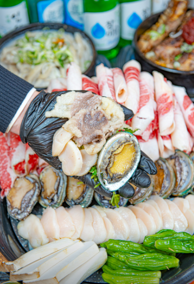 - 전차삼합 (전복, 차돌박이, 키조개 관자 / 18,000원)