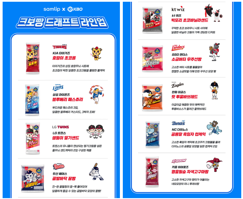 KBO 구단별 특성을 반영한 다양한 맛의 빵과 디저트가 출시될 예정이며, 일부 인기 구단은 특정 선수의 한정판 제품도 등장할 가능성이 큽니다.